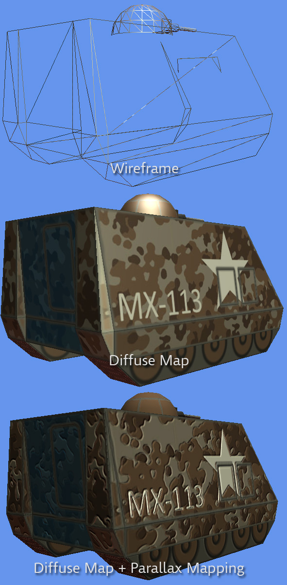 I also tried to implement Relief Mapping (a.k.a. Steep Parallax Mapping). Unfortunately that didn’t work too well. I hope that I will be able to fix it at some point, but right now animation is of a higher priority.