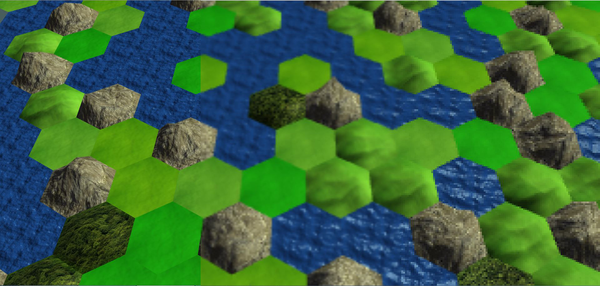 So here’s just a quick one. Since these days pixelated “retro” graphics are hot, there’s a way you can turn your uncool Full HD browser game into a cool retro game. The key is changing how the browser handles upscaling of images. By default linear filtering is used to upscale lower resolution images. With the CSS property “image-rendering” you can control this (source):